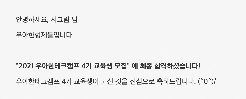 캠프가 끝나고 나면 우아한형제들에 신입으로 입사 지원할 수 있는 기회를 준다. 나는 캠프를 통해 우아한형제들의 문화를 더욱 체감하고 정말 가고 싶은 회사라는 확신을 얻게 되어 입사 지원하게 되었다. 그리고....