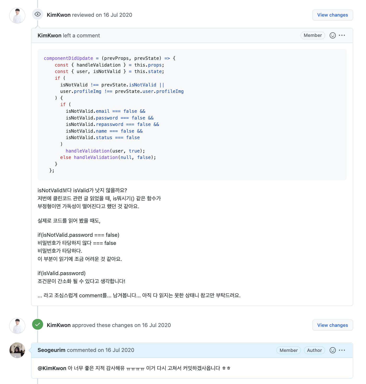 둘째, 코드 리뷰 활동